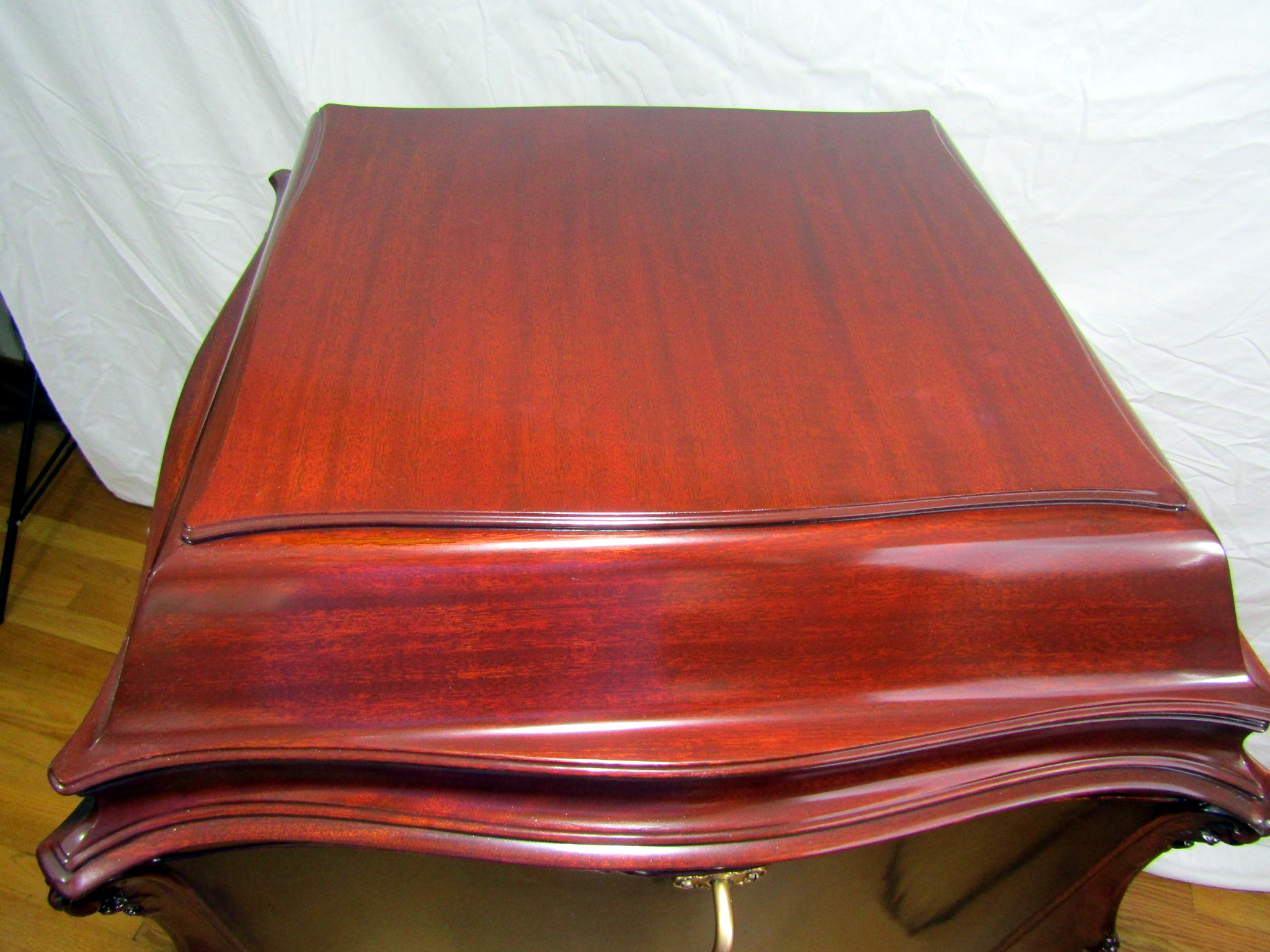 In addition to Mahogany, a number of other veneer options were available; finishes in Circassian or American Walnut added $50.00 to the price tag