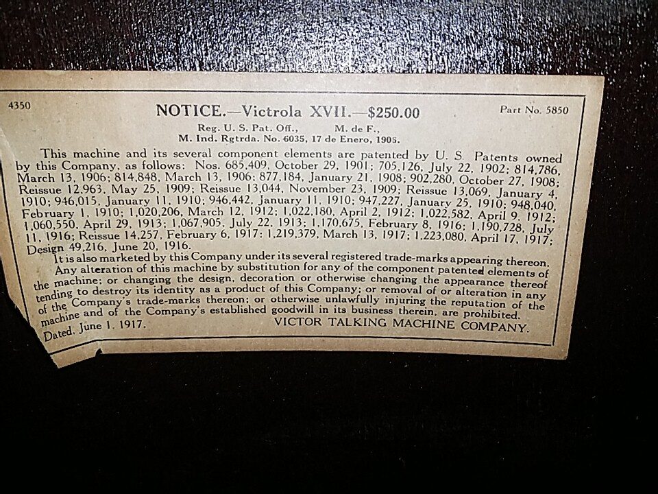 The VV-XVII or “Victrola the Seventeenth” was Victor’s ‘premium’ phonograph listed in the company’s 1916-1921 product catalogs. A year prior to its introduction, Victor had launched the magnanimous VV-XVIII as their top-of-the-line Victrola retailing for $300.00 ($6,398 in todays money), which was $100.00 more than the VV-XVI ‘flagship’ model. This was an attempt to find a market ‘niche for wealthy buyers who wanted an exceptionally elegant phonograph in their home.